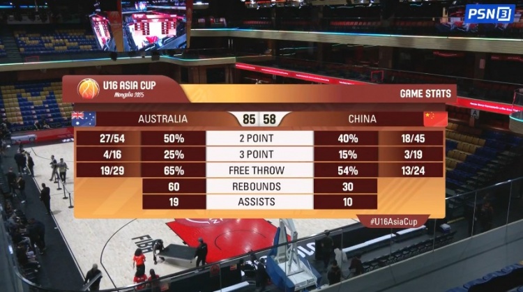 澳大利亚:保罗26分10板9助2断、汉密尔顿16分8板、布朗14分8板1助2帽、伯恩11分7板2助3断、爱德华兹9分3板1助、马博特5分7板1助、沃特尼3分1板1助、佩维1分1板1助、乔根森5板1助、麦肯2板、达默斯1板2助、马查尔1板